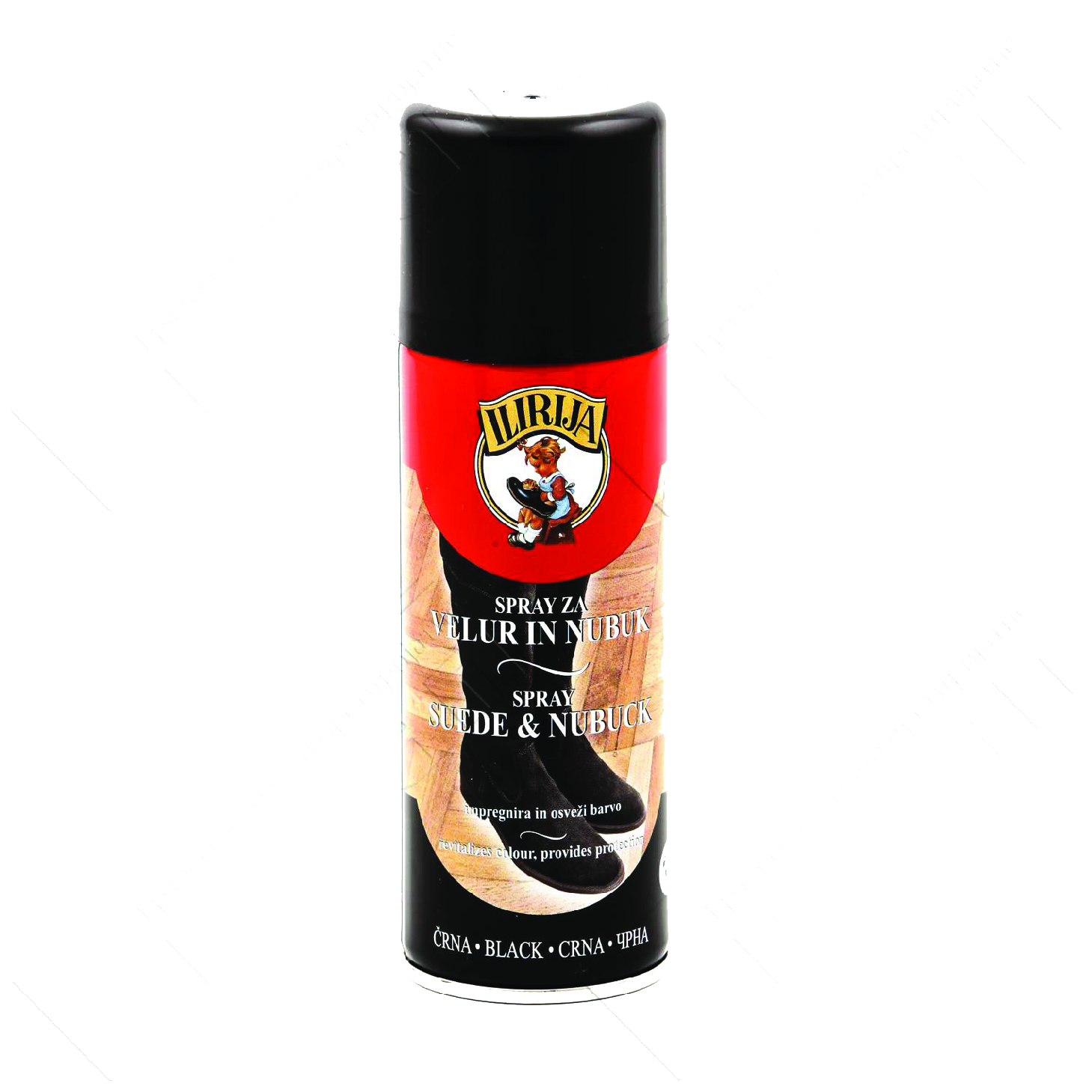 - ILIRIJA SPRAY FOR VELOR-BLACK 200ML Илирија спреј за велур е производ за нега и одржување на обувки од велур. Благодарение на својата специјална формулација, овој спреј ги штити обувките од нечистотија, влага, дожд и снег